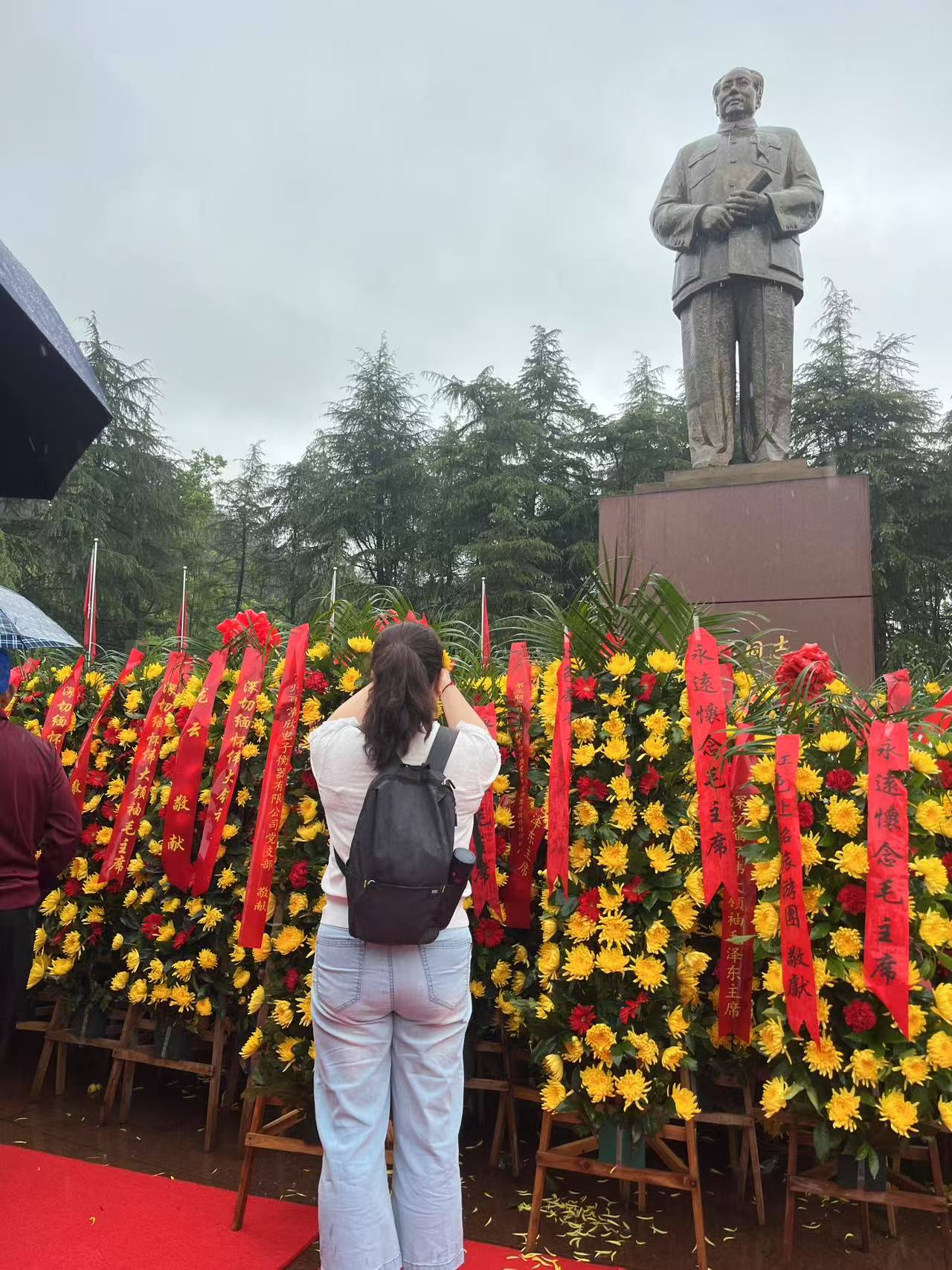 次日,盡管大雨傾盆,卻澆不滅黨員們的熱情。在韶山毛澤東銅像廣場,全體黨員莊嚴肅立,向毛澤東銅像敬獻花籃,深深三鞠躬,表達對偉人的無限崇敬與追思。隨后,大家參觀了毛澤東故居。這座始建于1878年的土木結(jié)構(gòu)農(nóng)舍,是毛澤東誕生和度過少年時光的地方 ,屋內(nèi)陳列的舊物,無聲訴說著偉人的成長經(jīng)歷,激勵著黨員們不忘初心、艱苦奮斗。滴水洞曾是毛澤東回鄉(xiāng)居住之所,這里靜謐清幽,黨員們在此感受偉人的家國情懷。